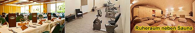 Wellness: Innen-Pool, Sauna, Massagen, Kosmetik, Fitness.