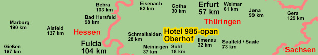 Bad Langensalza (40 km), Erfurt (50 km) und Weimar (64 km).