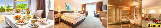 Wellness: Hotelhallenbad, Sauna, Massagen, Fitness, Kosmetik.