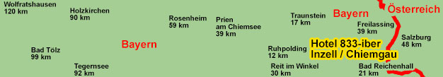 Oberwiesenthal (51 km), Plauen (88 km), Leipzig (88 km), Jena (89 km), Hof (95 km), Dresden (96 km), Karlsbad / Tschechische Republik (99 km) und Prag / Tschechische Republik (180 km).